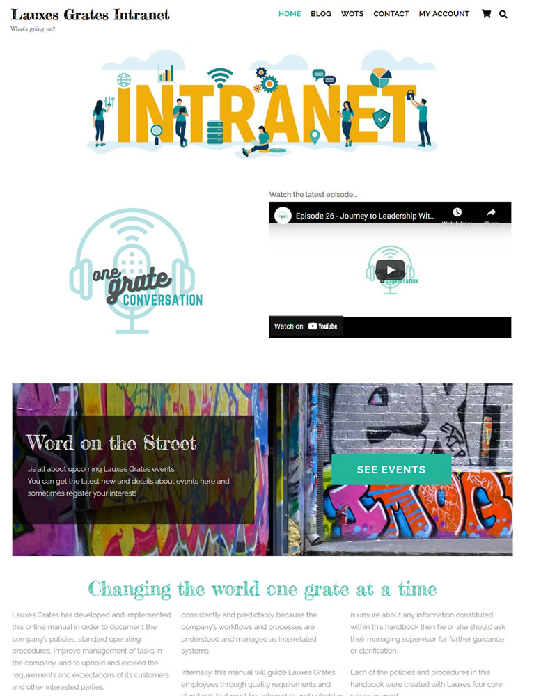 Now that you have registered and logged in, you are one of the Team… Yes! That you… One of the Team, you will now get to see all of the cool stuff we have in store for you on the Lauxes Grates Intranet.