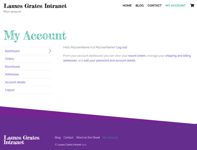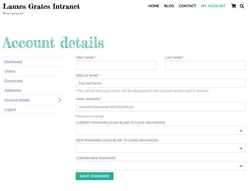 When you first arrive on the Lauxes Grates Intranet you will see a My Account button in the top right corner of the view.